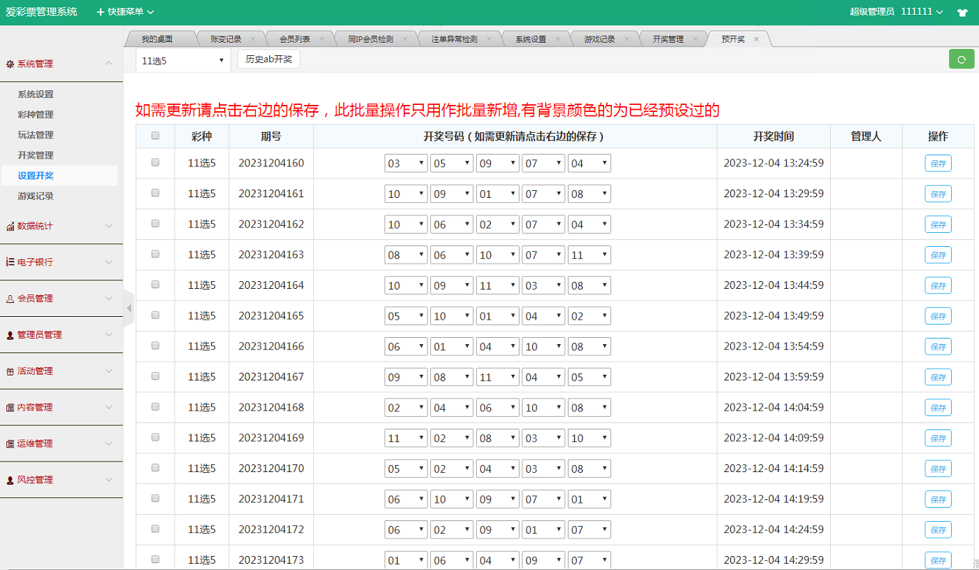 后台可设置系统彩控杀率,后台新增功能修改投注内容