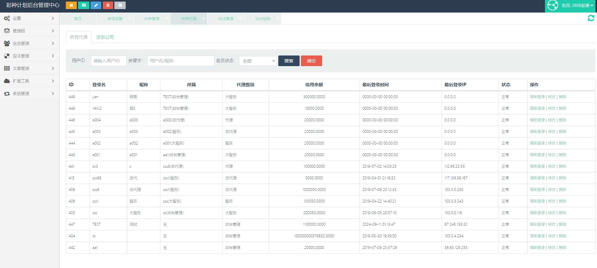 该系统支持灵活的多级账户管理体系,适用于多层级彩票代理和会员管理。包括总管理员、公司股东、大股东、总代理、代理商、普通会员等多层级角色,每个角色拥有不同的权限。系统支持按层级对各账户进行权限分配,确保平台操作权限分工明确,有效避免滥用权限的风险。