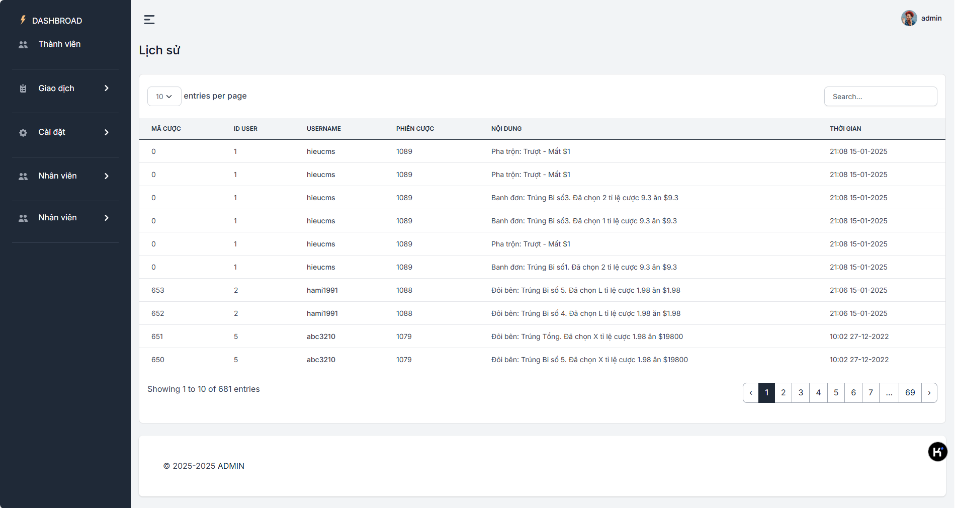 用户管理:管理用户账户,查看用户余额、投注历史、奖金发放等。