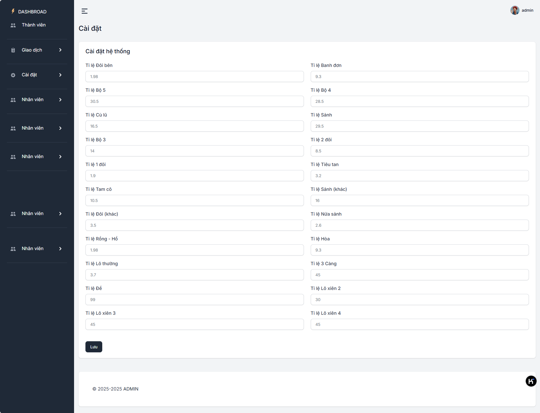 赔率管理:管理员可以调整不同玩法的赔率。