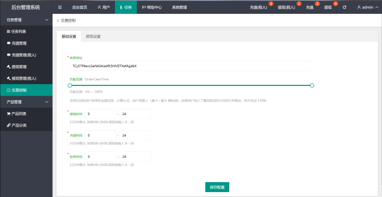 卡单控制(后台输入第几单开始卡单,输入佣金系数 和要让客户充值的金额区间,那么用户在这个卡单生效后 订单的价格肯定在后台设置的充值的区间之内,可以多个数量)